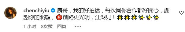 陈自瑶:康哥,我的好拍挡,每次同你合作都好开心,谢谢你的照顾,
