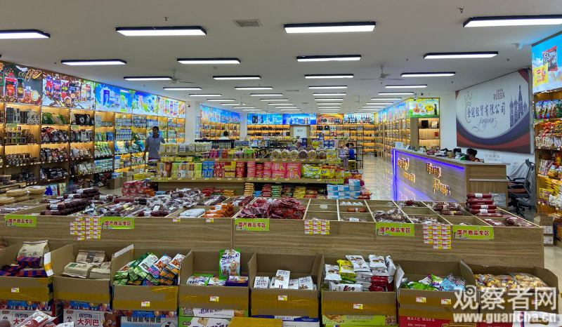 绥芬河自贸区内商铺中琳琅满目的俄罗斯商品