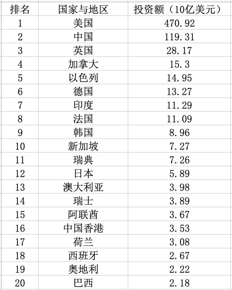 图1:2024年人工智能私人投资额排名前二十的国家(单位:十亿美元)