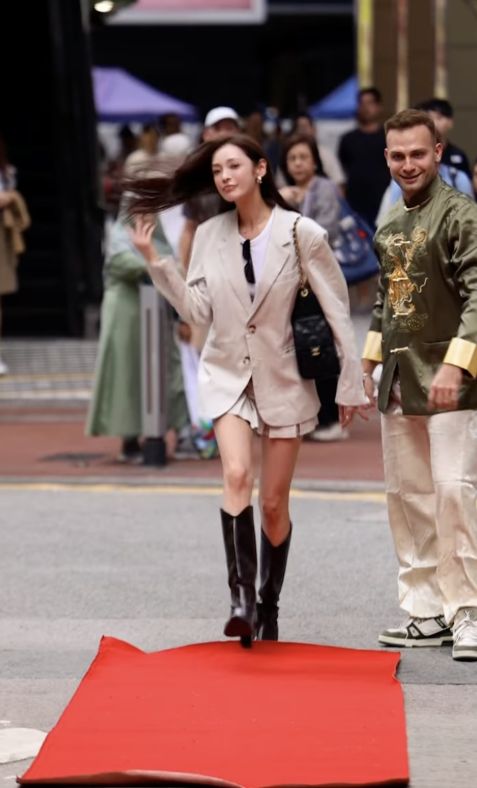 近日他来到香港,邀请了多位艺人、网红在香港街头走红毯,陈桢怡便是其中一位。她身穿白色西装外套搭配短裙,青春洋溢,身高一米七的她身材高挑、外形靓丽,走完红毯后还大方秀出美腿。