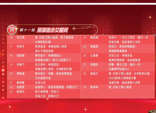 TVB台庆颁奖礼今日在将军澳电视城公布入围名单,逾40位艺人集体亮相!