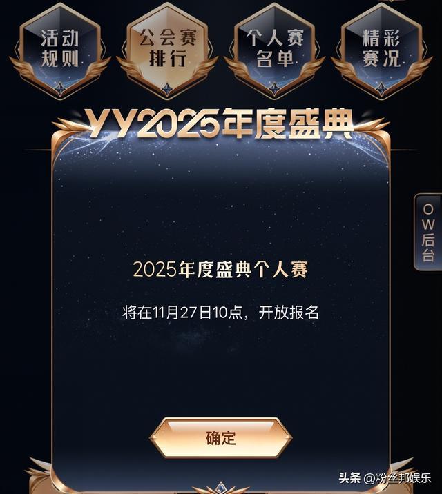 随着公会赛的圆满落幕,YY直播2025年度盛典的个人赛即将拉开帷幕。作为平台最精彩的赛事之一,个人赛预计将带来更多高潮,主播和神豪大哥们的表现值得期待。