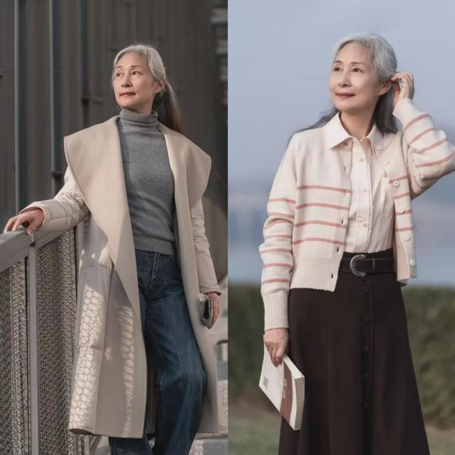 小编觉得她的穿搭,应该是很多被白头发困扰着、不知如何穿衣打扮的姐妹们的福音,我们可以试着在她的穿搭中,找到适合自己的打扮,让自己也能看起来优雅从容。