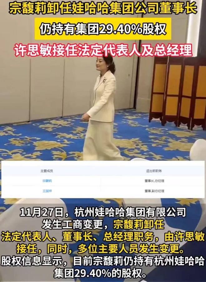 宗馥莉卸任娃哈哈董事长,许思敏全面接手,她被质疑斗不过杜建英