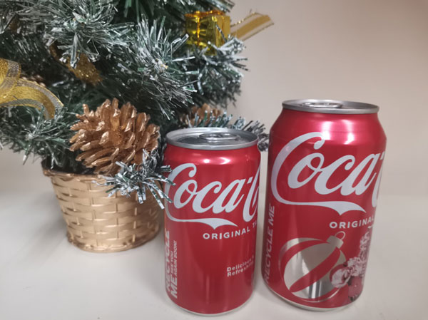 颇为可爱的超小型圣诞树(美国圣诞商品一般在感恩节前就开始陆续上架)和小小的新版可乐罐。