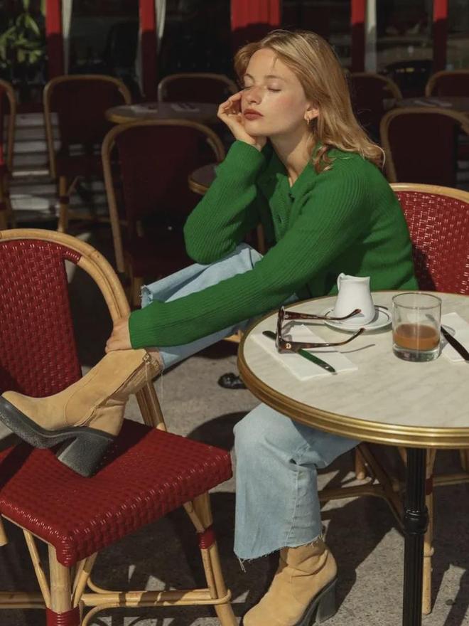 深蓝色奶奶衫,让人看起来更加有力量感,它会陪着你,从初秋走到深冬,搭配一件蓝色牛仔裤,充满身体线条的穿搭会更显时髦风格,同时看起来会更潇洒一点,一双厚底靴子搭配,这样就能让穿搭更有平衡感。