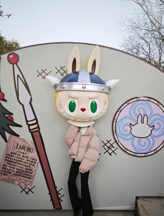 粉色棉服配黑色长裤,双腿又细又直,站在墙边比同龄孩子高出大半个头,目测身高已经接近1米6。