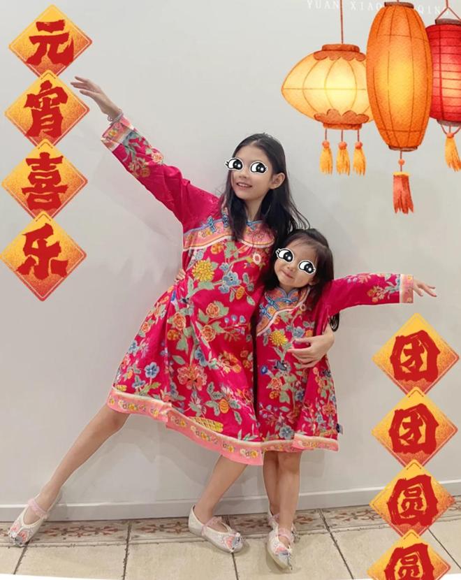 不少网友猜测,站姿照应该是大女儿胖妹的手笔,而坐姿照的低角度仰拍更像是4岁小女儿的创意。