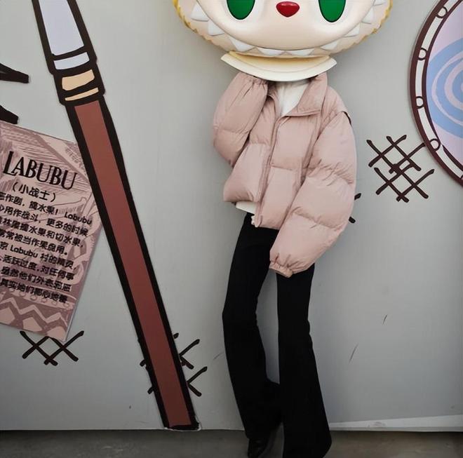 照片里她穿着粉色棉服和黑色长裤,背对镜头站在走廊里,双腿纤细笔直,身形比例已经有了超模雏形。