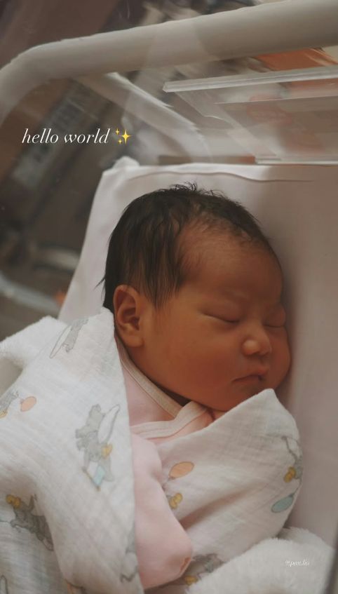 今日,丁子田晒出女儿的照片,并发文 “hello world.”,宣布顺利生下女儿!