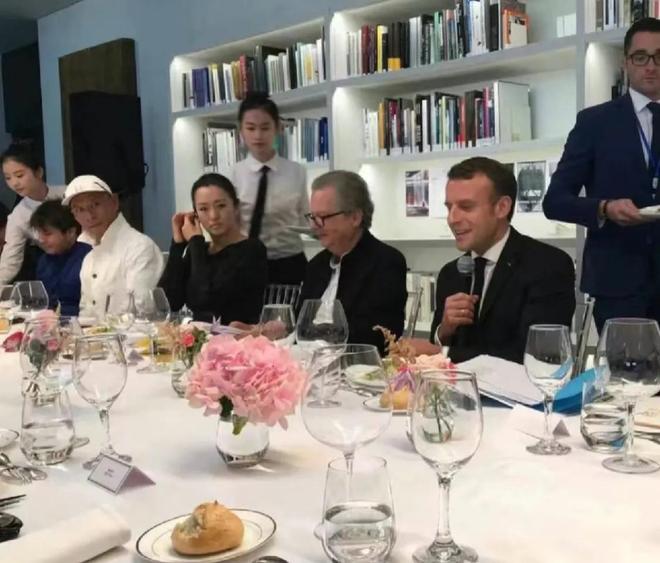 巩俐与马克龙夫妇共进烤鸭,低调出席未戴华丽首饰。
