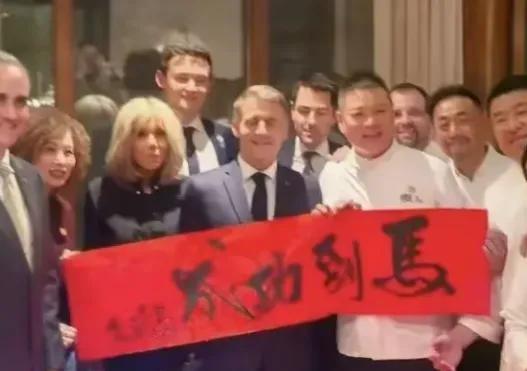 马克龙那幅字写得怎么样不清楚,但吃完饭能提笔写字,说明挺满意这顿烤鸭。布里吉特也在旁边拍照,感觉他们对中华美食确实感兴趣。