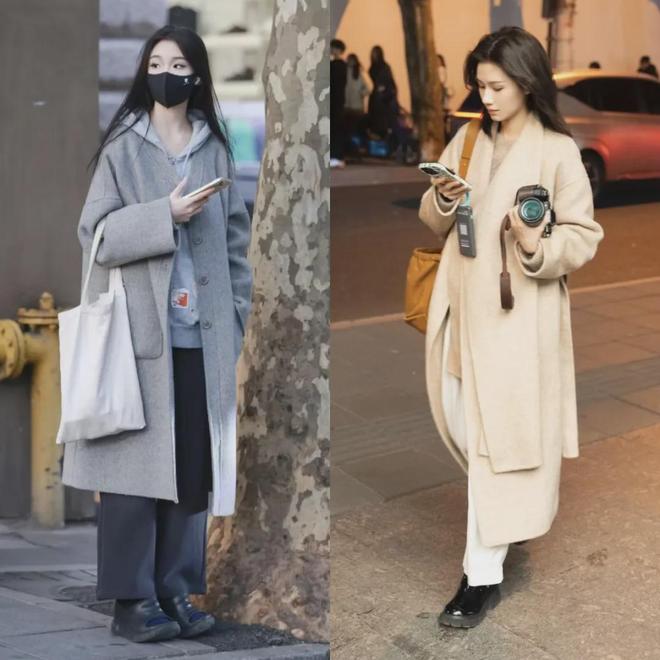 另外,上海、杭州的小姐姐们,穿的大衣不会很长,大多是“到小腿中间”的长度,刚好盖过膝盖,露出脚踝下面一点的裤子和鞋子,层次感一下就出来了,还不会显得拖沓。