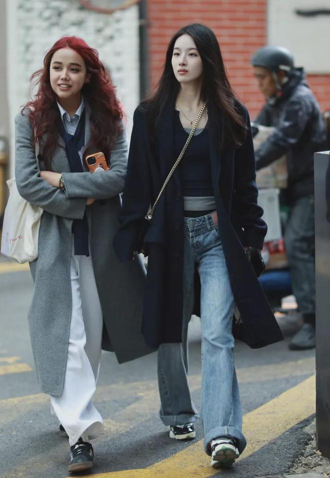 要是内搭太长,就把下摆塞进裤子里一点,哪怕只塞一半,凸显出腰线也能瞬间显高,这招上海、杭州街拍里的小姐姐们都在用。