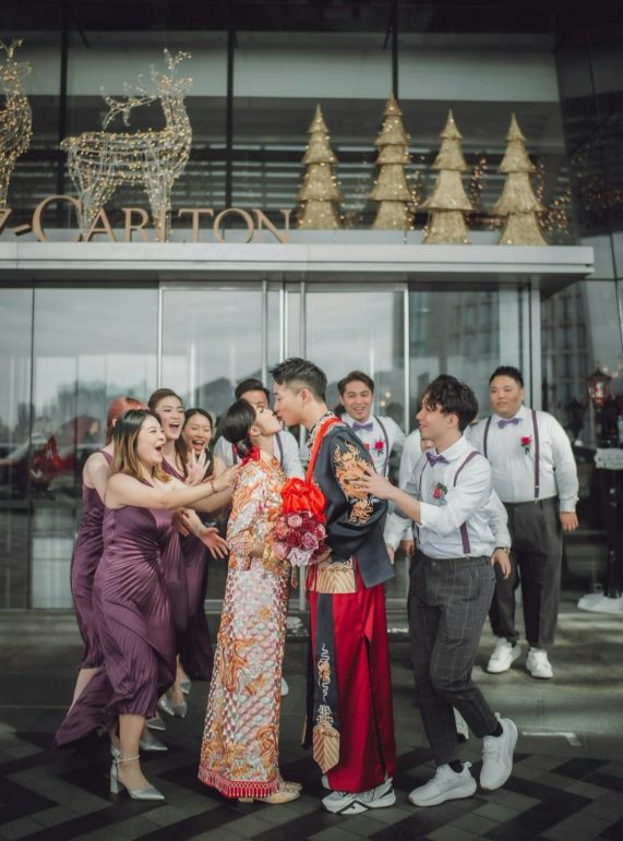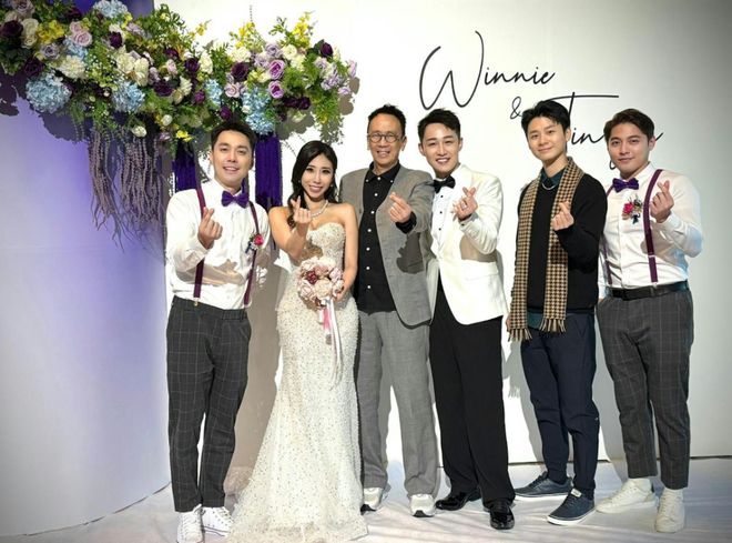 TVB小生容天佑近年凭剧集《法言人》见习律师 “Tony 仔” 一角走红,日前他与出身珠宝世家的富家女扶天恩在香港丽思卡尔顿酒店举行婚礼,伴郎团包括 TVB 好友邹兆霆和陈俊坚。