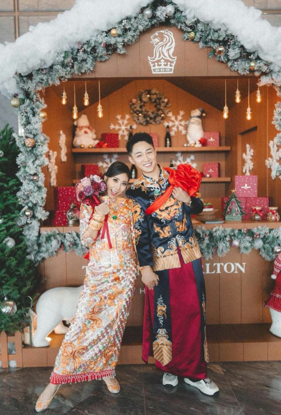 当天早上,新郎容天佑与一众伴郎前往接亲,容天佑身穿藏蓝色金龙刺绣马褂,新娘扶天恩则身穿金线绣龙凤图案的粉红钻褂皇,全身还佩戴满了金器,其中包括一对造型如流星锤的巨型龙凤镯,分量十足,耀眼夺目。
