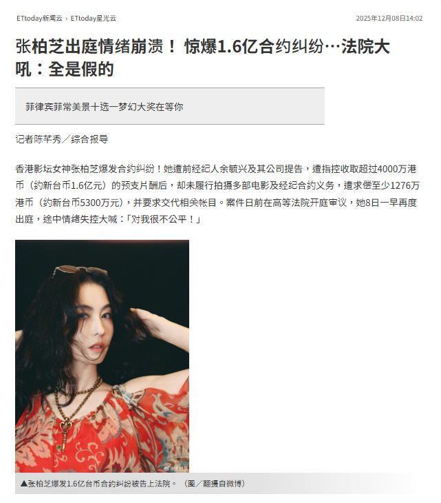 从余毓兴的角度来看,他确实挺冤枉的,这官司也没什么好审理的,结果没想到庭审现场,突然出现大反转。张柏芝情绪崩溃,当场大哭不止,对着法官反复强调余毓兴的说法全是假的,自己压根不知道这笔合作的详细情况,更不存在收钱不履约的情况。她直言,当年的合作合约根本不是自己签的,而是助理背着她偷偷代签的,自己从头到尾都被蒙在鼓里,反而指责余毓兴借着合作的名义中饱私囊,骗走了自己的钱