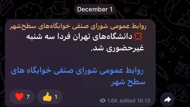 然而,这场历史悲剧非但没有成为伊朗人不幸的休止符,反而成为现实悲剧的预告片。截至12月1日,德黑兰高校再次宣布集体“居家上网课”后,深陷危机的德黑兰已经连续停摆9日,正在德黑兰大学访学的笔者“被迫”享受了人生的第一次9天“大长假”。