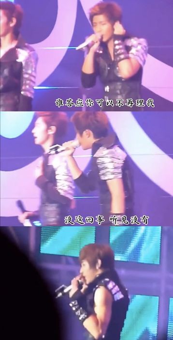 台上唱歌时,他对着汪东城唱“谁答应你可以不再理我”,不知道以为汪东城辜负他了。