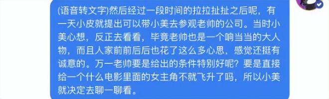 为了拿下小美,老导演没有亲自出面,而是派手底下的人当中间商,拿着资源和好处轮番引诱,又是许诺主角戏份,又是画着名利双收的大饼,试图让涉世未深的小美乖乖就范。