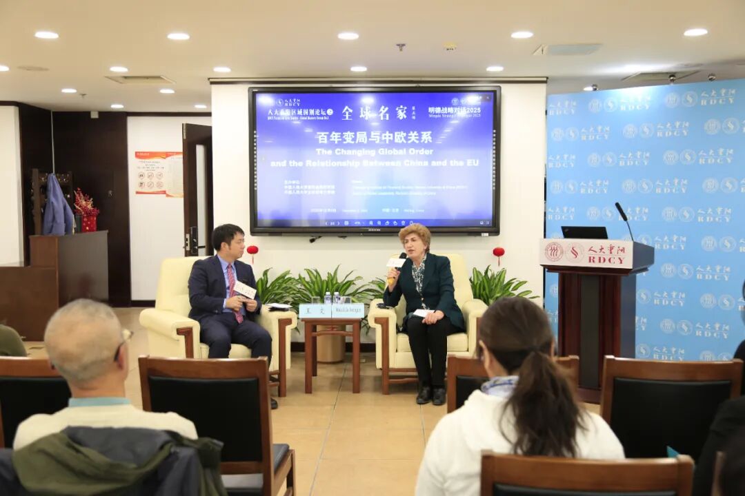 12月5日,中国人民大学重阳金融研究院(人大重阳)与中国人民大学全球领导力学院联合主办的“区域国别论坛之全球名家系列”第五场活动在北京举行。本次论坛聚焦“百年变局与中欧关系”,特邀欧洲资深政治家、布鲁塞尔智库“重塑欧洲”董事会主席、葡萄牙前就业部部长玛丽亚·若昂·罗德里格斯(Maria João Rodrigues)发表主旨演讲。