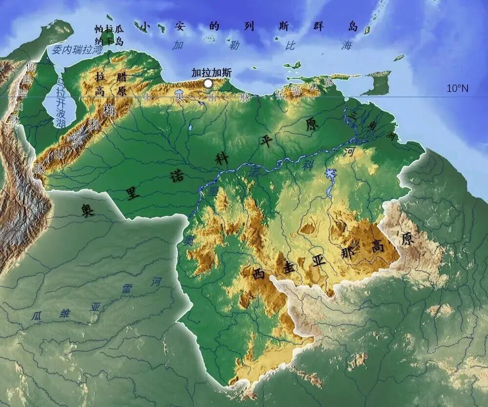 东南部圭亚那高原占全国 45%,西北部为安第斯山脉,中部奥里诺科平原雨季成沼泽,热带雨林广布。