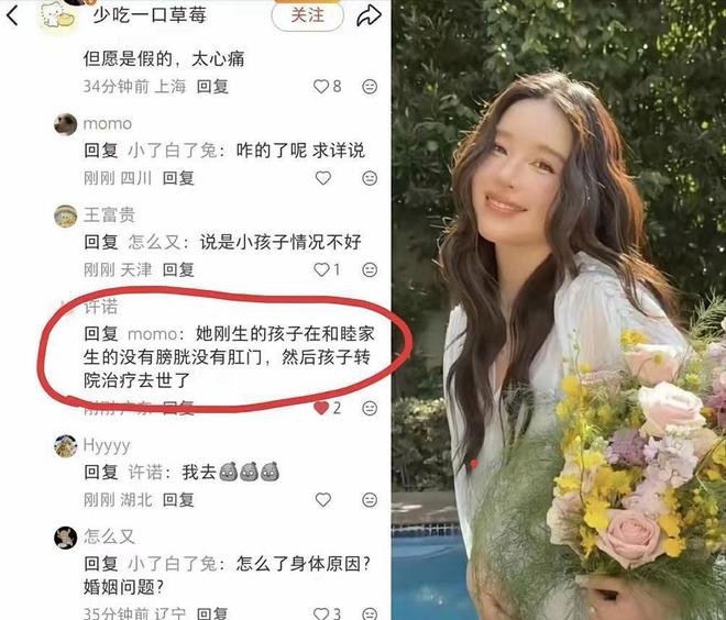 前不久,有疑似阚清子生产医院的知情人士曝,阚清子的孩子没有保住。截图显示,阚清子近期在高端私立和睦家医院生产,孩子36周早产,还是个可爱的女婴。但孩子出生后便被发现存在重度先天畸形,无肛门、无膀胱,连医疗导管都无法插入,情况危急到医生都束手无策。