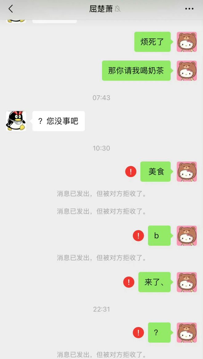 第一波爆料中司晓迪就晒出过和屈楚萧的聊天记录。两人前一秒还在微信里打情骂俏,氛围火热,后一秒司晓迪随口提了一句让屈楚萧请喝奶茶,屈楚萧直接装死不回消息。等司晓迪再次发消息时,发现自己已经被屈楚萧拉黑。娱乐圈各种抠门男人也是见识不少,但抠成这样的,也挺罕见的。