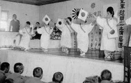 日军慰安所内的慰安妇在做政治宣传表演
