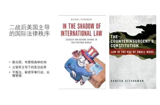 图为2017年以来我在《宪法学》和《法律与发展》课程中使用的一页PPT。我的美国籍博士生贲流最早提醒我注意美国的平叛法(Counterinsurgency Law)。这不是一种部门法,而是美国“涉外法治”的一种理论化描述。美国国内法中有许多针对其他主权国家及其地区的法律。按照这些法律,其他主权国家的合法政府有时被标记为“叛乱者”,另一些时候其他国家的叛军又可能被指定为“叛乱者”,由此可见“叛乱者”所破坏的秩序不是特定主权国家的国内秩序,而是美国所主导的全球秩序。