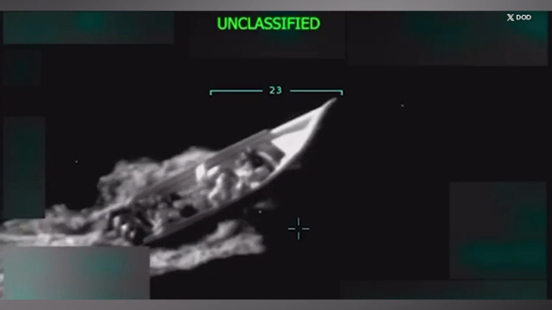 2025年年底,特朗普政府下令美军在加勒比海多次打击委内瑞拉“运毒船”,但船上人员的身份问题在美国引发法律争议 视频截图