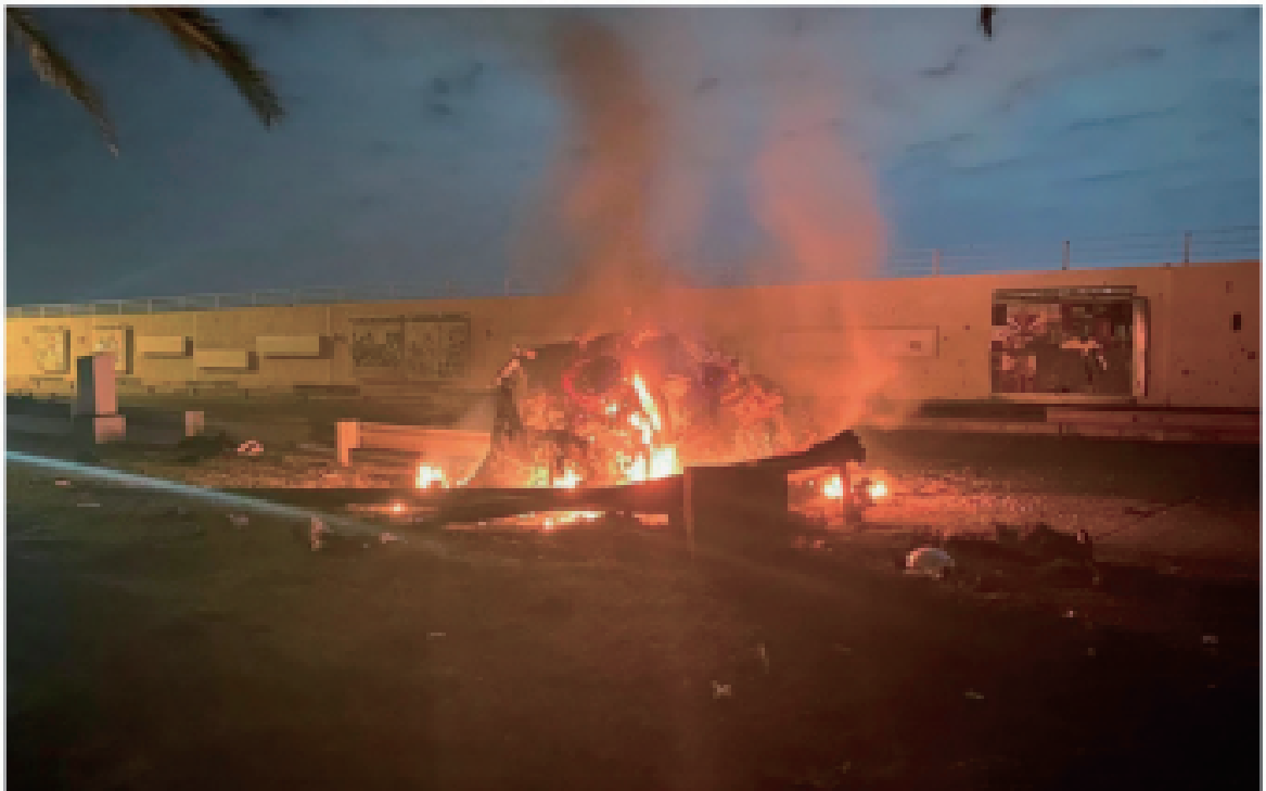 离开停机坪后,苏莱曼尼和他的手下先后登上了穆汉迪斯安排的极为普通的“现代”牌和“丰田”牌轿车,准备出关并前往穆汉迪斯在绿区的住宅下榻。夜晚的巴格达机场四下里静悄悄的。打火,起步,两辆轿车一前一后准备开出机场,而危险正在这死一般的沉寂下袭来。无论是穆罕迪斯还是苏莱曼尼,谁都没有想到,这将是他们生命中最后的时刻,又或许二人在反美第一线摸爬滚打这么多年,早已将生死置之度外。