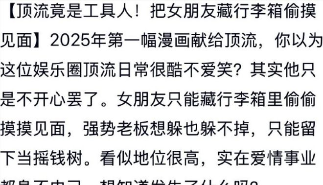 这场内娱顶流隐婚疑云,究竟是网友的过度解读,还是被资本掩盖的真相?如果王一博真的在2023年结婚生子,你会接受他的"单身人设崩塌"吗?乐华又会如何平衡艺人隐私与公司利益?随着舆论发酵,更多细节或许会浮出水面。无论真相如何,这场横跨七年的绯闻纠葛,早已成为内娱瓜圈的"常青树",而顶流明星的私生活与公众形象之间的边界,也再次引发了大众的思考。