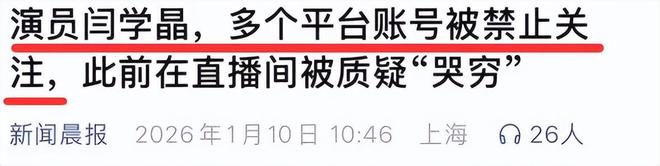 闫学晶直播哭穷引众怒,多平台账号状态受限制,写道歉信遭到质疑