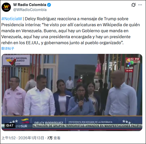 委内瑞拉代理总统罗德里格斯回应特朗普言论X平台