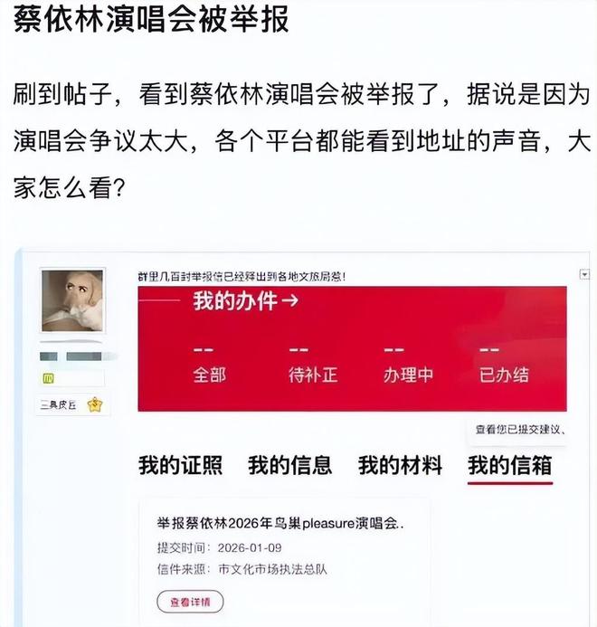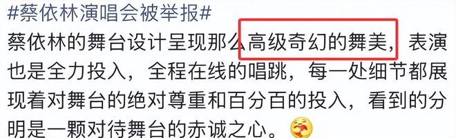 前两天蔡依林的演唱会被吐槽太阴间,本来仅限于网上讨论,结果没想到有不少网友直接举报到各地文旅局,要求禁止蔡依林到本地开演唱会。