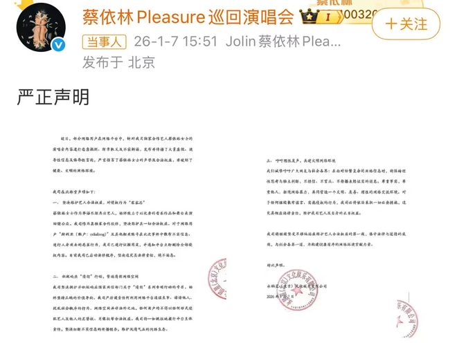 虽然不知道真假,但是显然已经对蔡依林造成影响。要知道台北站是蔡依林2026年演唱会开始,她今年已经在好几个城市申报了演唱会,如果遭到抵制,肯定会对她造成不小的影响。