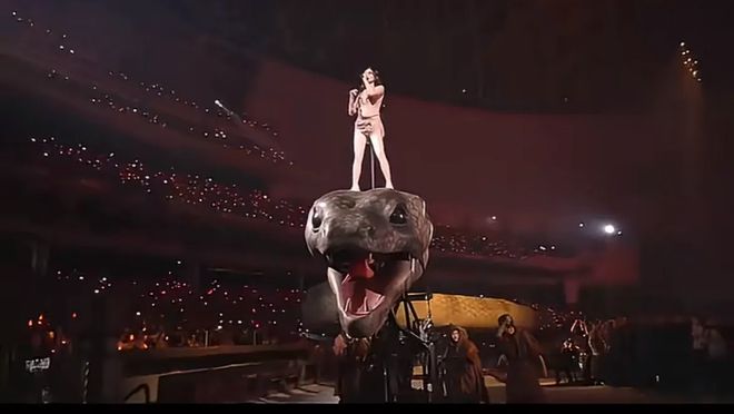 可能有网友觉得太过了,但是看过蔡依林演唱会的都觉得她演唱会确实有点令人不适,30米巨型机械蛇从舞台地底缓缓升起,金色公牛雕像伴随诡异灯光旋转,还有悬空剑阵和非遗爬竿表演穿插其中,再加上昏暗的舞台氛围和所谓七宗罪主题,看不出美感,反而牛鬼蛇神元素集齐了。还有网友觉得这些设计全是光明会暗号,机械蛇是吸运工具,整个舞台布局是玄学法阵,这场演唱会根本就是大型邪教献祭仪式,目的是借观众的运气为自己铺路。还有人说看完演唱会之后倒霉了。