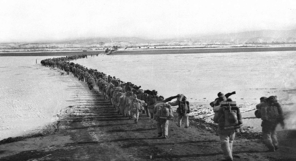 1950年10月初,美国侵略军悍然越过“三八线”,并把战火烧到中国边境。10月19日,中国人民志愿军雄赳赳、气昂昂,跨过鸭绿江,和朝鲜人民共同抗击侵略者。新华社