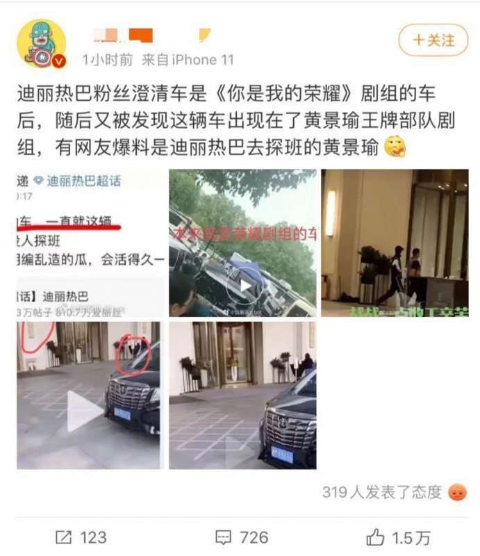 黄景瑜的车出现在荣耀剧组?粉丝否认探班迪丽热巴 网友众说纷纭