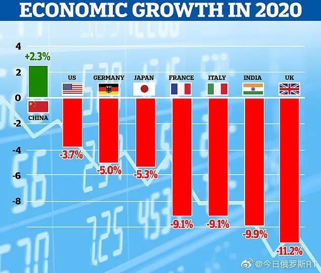 根据预估,美国GDP2020年至少萎缩3.6%到4.3%。那么,中国经济呢?根据1月18日统计局公布的数据显示,2020年中国GDP总量超过了100万亿,达到了101.5986万亿元,按可比价格计算,比上年增长2.3%。这就是中美较量一年的结果,美国死了近40万人才保住了负增长3.6%或更高一点的经济萎缩,而中国速战速决控制疫情后依然实现了2.3%的全年增长,尤其是4季度中国GDP增速达到了6.5%,这意味着中国经济不但恢复了正常,增速还加快了,同时抗疫付出的代价相比美国付出40万人的代价才保住负增长3.6%或更低的成绩,真的是天上地下,毕竟中国将人民的身体健康和生命安全放在了第一位,且真正做到了最低感染人数和死亡人数。当然,美国的欧洲盟友并不比美国好到哪里去。德国公布2020年GDP是负增长5%,法国和英国则更惨,分别萎缩了9.4%和10.3%。