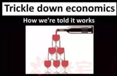 所谓涓滴效益,按里根内阁预算总监大卫·斯托克曼的解释是:解决贫困的最好办法不是政府直接救济,而是通过扩大对先富起来的人受惠来增加财富总量,然后再使穷人受益!
