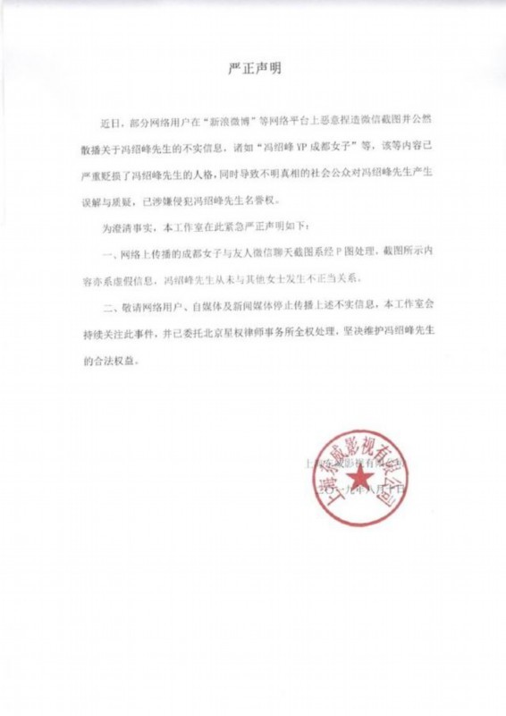 而冯绍峰的工作室也曾公开辟谣,说网传的照片都是恶意P图,冯绍峰从未与其他女士发声不正当关系,禁止传播不实信息。
