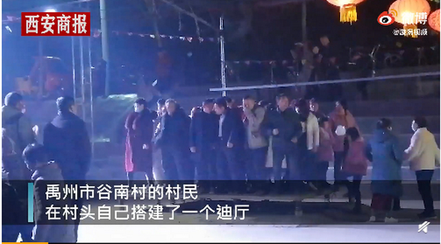 2月18日,河南许昌,禹州市一村子,村民在村头搭建了一个野外迪厅,蹦迪的台子上站满了男女老少,伴随着激烈的音乐摇摆十分欢乐。一位村民称,每天都有人去蹦迪,前去蹦迪大部分的是中年人,大家很喜欢这种娱乐方式,既锻炼身体又能娱乐。
