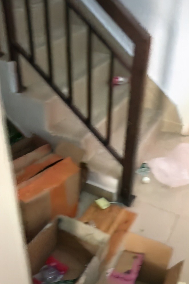 就算是楼梯口也是凌乱地摆满了废纸箱,甚至一些随处可见的饮料瓶、垃圾。
