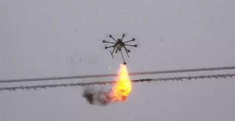 比如我们各地电网目前普遍应用无人机对电网进行巡查与管理。对于高空电线积雪覆冰的问题,无人机不仅能及早发现,还能迅速处理——包括无人机直接喷火融冰、或者用压缩空气炮来打,甚至在无人机上加装固定杆直接清理覆冰。