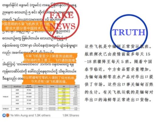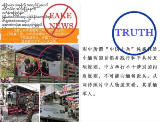 来源微信公众号:补壹刀 执笔/叨叨姐&刀剑笑 缅甸军方接管政权进入第24天,政局突变引发的乱局依然待解。 正如我外交部发言人所说,缅甸民盟和军队都和中方有着良好关系,当前局面是中方不愿看到的。中方也已明确表态,愿为缓解缅甸当前局势提供一切形式的帮助。 但奇怪的是,过去几周,缅甸国内以及西方媒体上出现不少针对中国的谣言和怪论,比如“中国支持政变”“帮缅甸军方建防火墙”等,故意针对中国的意图非常明显。 没错,中国又“躺枪”了! 在缅甸局势仍然紧张的背景下,这些谣言具有相当大的误导性。那么这些谣言从何而来?幕后黑手又是什么目的呢? 离3月1日军方再次对民盟领导人进行审讯还有4天时间。 来自路透社的最新消息,缅甸军方任命的外长温纳貌伦已经抵达泰国进行商谈。 据称,温纳貌伦此行是希望通过东盟各成员国,为缅甸军方接管政权寻求一个解决方案。 不光缅甸军方在谋出路,有报道说,以印尼为首的东盟国家,也正在为缅甸危机寻找外交解决途径。 不过,原计划明天访问缅甸的印尼外长雷特诺取消了既定行程。他的发言人说:“考虑到缅甸目前的局势,以及其他东盟成员国的意见,我们认为现在不是进行缅甸访问的适当时候。” 东盟积极推进缅甸各方和解,中国也已表态愿意提供一切形式帮助,而欧美方面呢?它们只会制裁和施压。 美国宣布再制裁两名缅甸军方官员,欧盟也表示做好了对缅甸军方的制裁准备。 缅甸国内呢? 支持昂山素季和民盟政府的民众仍在不断举行示威活动。最大的一次是在22日举行的全国大罢工。在应对示威过程中,缅甸安全部队反应克制,抗议活动“有惊无险”。 缅甸这次变局纯属它的内政,中国作为邻邦也不愿看到它出现如今的局面。 但没想到,恰恰是中国,躺枪了。 简单按照时间线,帮大家理理各色谣言的发酵路径。 最初一则明确的涉华谣言始于2月9日。 当时的缅甸社交媒体上传出一种怪论,说什么“中国的5架飞机抵达缅甸,据说大部分是中国技术人员,为的是帮助缅甸军方建立防火墙”。 第二天,也就是2月10日,陆续有被蛊惑的缅甸人聚集到中国驻缅甸使馆前表示抗议。 辟谣来得很快。 10日下午,缅甸中国商会就发布公告称,中国飞机只是正常的海鲜运输货机。 不过,谣言依然在继续,甚至有了升级版本。 11日,缅甸坊间传出“这些飞机还运送了许多武器给缅甸军方”的谣言。 12日,这则谣言又被进行再加工,改成中国“向缅甸提供网络防火墙技术,用于阻止民众使用部分社交媒体”。 接着就是14日,涉华谣言又搞出一个更离谱的:“中国士兵出现在缅甸街头”。 稍微用点脑子想想就知道,这纯属胡说八道。但这并不妨碍有些人有鼻子有眼地恶意栽赃:说什么“众所周知,缅甸士兵肤色没那么白,不仅装备齐全,还戴了口罩,虽然是为了不让人认出来。” 随后,谣言制造机还在加速。 16日,第三种谣言来了:“中国网络技术人员控制了缅甸通讯公司MPT”。理由呢,不过是MPT的服务号码7979因为无法识别外发的信息,有时会回复一条类似中文的乱码。 17日,又出现“中国银行制造的假币已到缅甸”的说法。 当天晚上,缅甸中部曼德勒市发生抗议活动,流出的现场视频中依稀能听到有用中文喊“一、二、三、四”的口令。 大多数缅甸人哪里懂什么中国人说的中文和缅甸人说的中文之间的区别,他们觉得这个视频正好佐证了之前的“中国士兵在缅甸帮助镇压示威”的谣言。 对于这些无稽之谈,我们的外交部、驻缅甸大使馆已经陆续进行了辟谣。 2月15日,中国驻缅大使陈海在接受缅甸主要媒体采访时,揭露了谣言制造者通过PS等方式恶意栽赃,并且特意强调: “