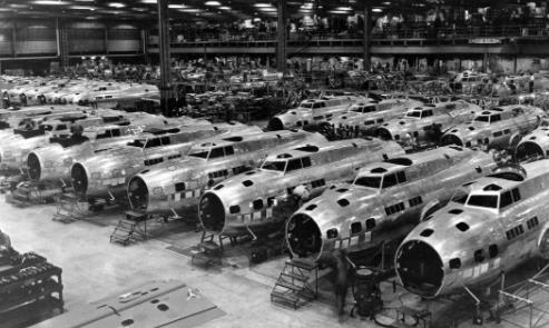 1942年,美国开动马力,震惊世界,一年就可以生产飞机4.7万架,坦克3万辆。平均每天生产128架飞机和82辆坦克。美国一个国家,妥妥的单挑全世界,每天从生产线上开出来的飞机和坦克就可以装备3个美军飞行大队和1个美军装甲团。
