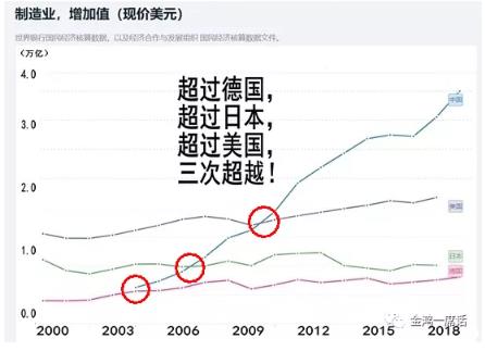 中国制造业的赶超速度有多快,上面这一张图可以体现出来。毫不夸张地说,很多外国人刚眨了一下眼睛,就被中国超得没影了。