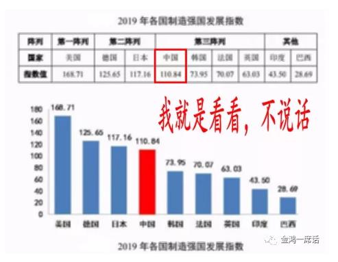 还有一点需要说明,中国的制造业是从1949年开始起步的,基础一穷二白,西方国家比我们早发展了几百年。尽管中国的制造业起步晚、障碍多,中国的制造业依然在以一种不可思议的速度疯狂地赶超着。